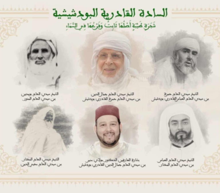 من أعلام مشيخة الطريقة القادرية البودشيشية بالمغرب: الشيخ سيدي المختار بن محيي الدين (ت 1914)، ثم الشيخ سيدي أبو مدين بن المنور (ت 1955)، الذي نقل الطريقة من طور التبرك وحده إلى منهج تربوي قائم على تصفية القلب وتهذيب السلوك، بعد مجاهدة روحية عميقة وإذنٍ بالتربية.